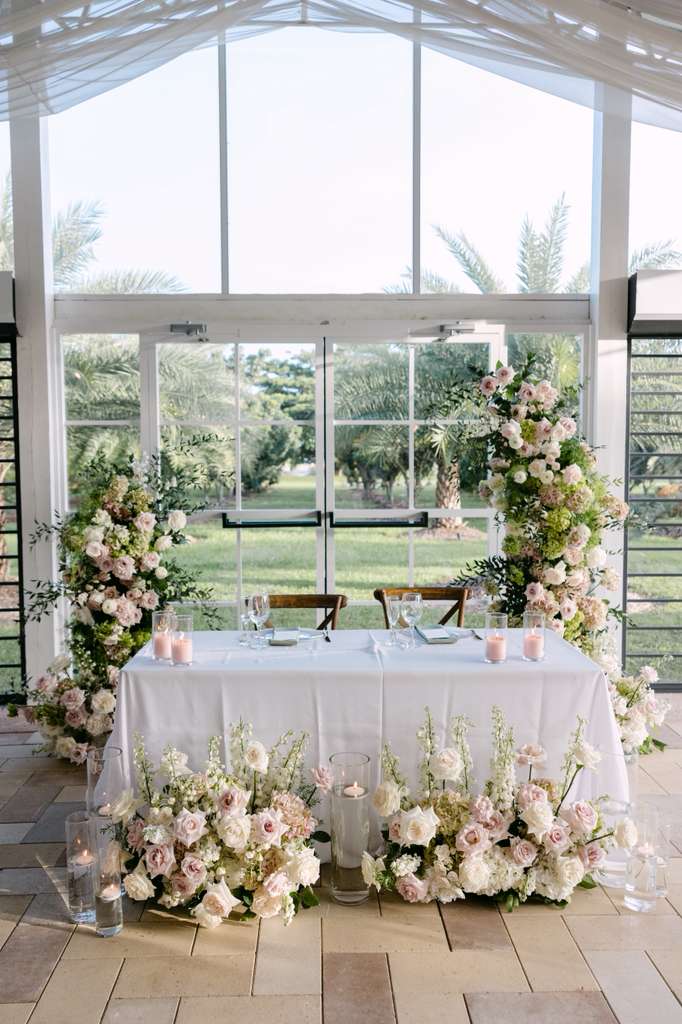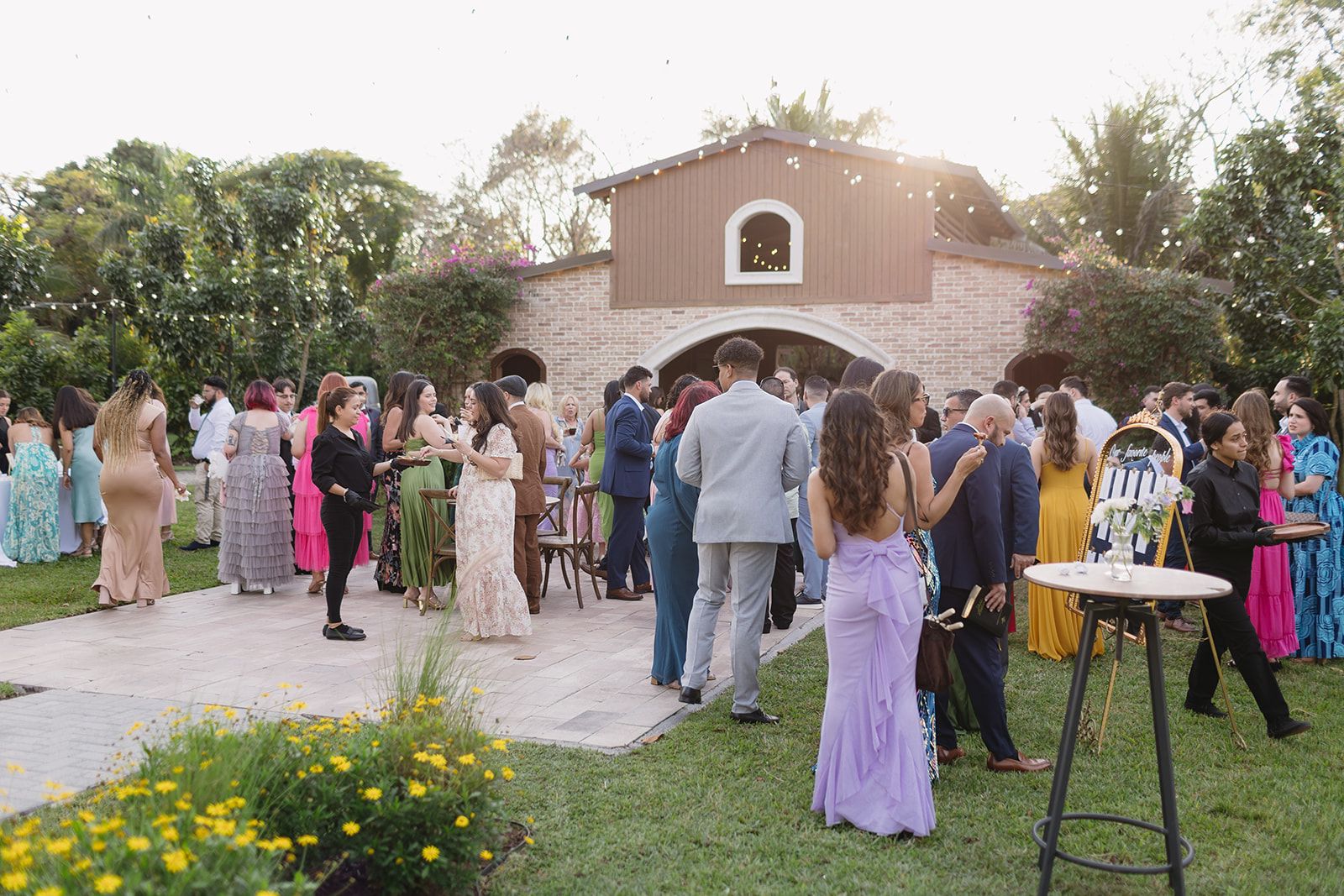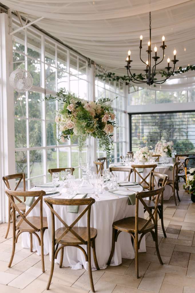 As a private wedding venue in Miami, Cinco Farm offers flexible catering options and an extensive décor collection with over 2,000 pieces included in the venue rental, allowing couples to personalize every detail of their celebration.